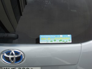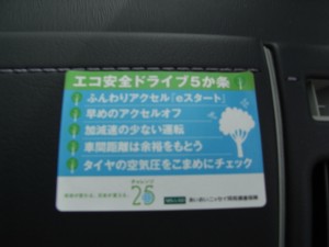この車両には前にも紹介した 「エコ安全ドライブ5か条」 のシールを貼っています。(エコカーではありますが・・・)