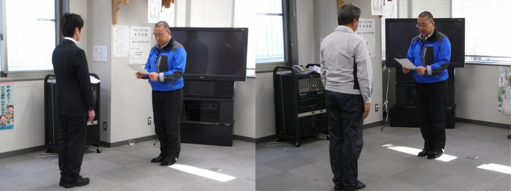本日、新入社員2名を迎え平成26年度の入社式を執り行いました。