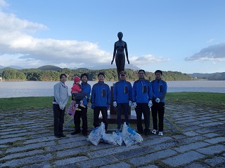 朝6時に、シオン像前に集合し、周辺のゴミ拾いを行いました。 地域住民や多くの企業の方々が集まりました。