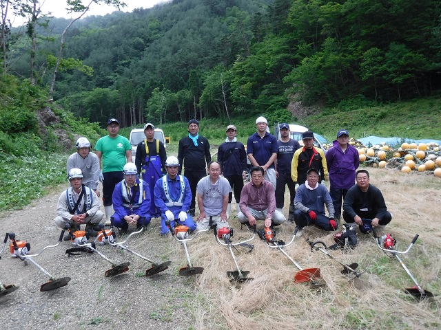 当日はお天気も良く、弊社からの5名を含め総勢17名で、朝8時半からお昼頃まで重茂地区のお祭り会場予定地の草刈りを行いました。