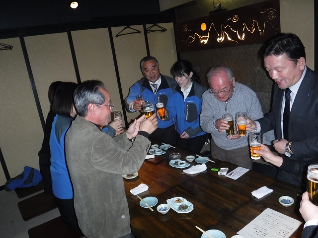 平成28年7月より安全専任者として土木、建築の各現場の安全巡視をしてくださいました佐藤健造さんが平成30年3月末日をもって退社されるに当たり、当社の横澤社長、千葉常務、経営管理事業本部内一同で送別会を開催いたしました。