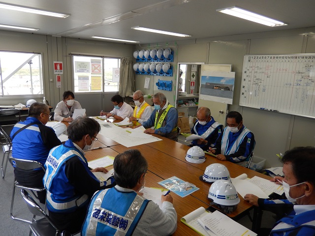 実施後の反省会で良好事項・指摘事項の発表があり、さらなる現場の安全、作業環境を改善する良い機会となりました。
