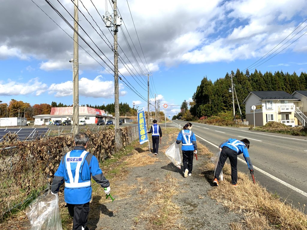 当社からは5名が参加し、県道286号線に沿って500mを清掃しました。