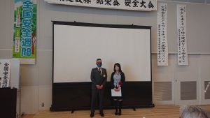 安全標語表彰では多数の力作の中から最優秀に選ばれた一首を代表として表彰させていただきました。