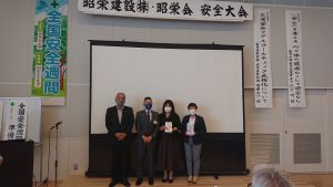 昭栄会会長、当社社長より挨拶の後、安全表彰として協力会社様、個人及び現場代表の方の授賞式をおこないました。