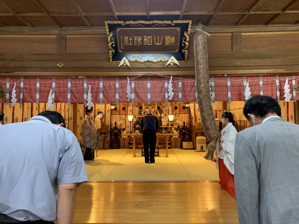 令和4年7月22日(金)に当社が受注致しました工事の着工に先立ち、もりおかかいうん神社にて工事関係者が参列し、安全祈願をして参りました。