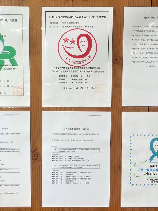 『昭栄建設株式会社は、全ての社員が仕事と家庭の両立ができ、且つ女性がいきいきと活躍できる職場づくりに引き続き全力で取り組んでまいります。』