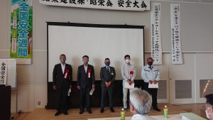 昭栄会会長、当社社長より挨拶の後、安全表彰として協力会社様、個人及び現場代表の方の授賞式をおこないました。