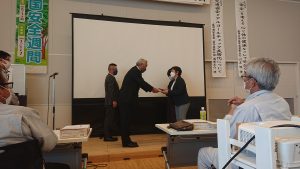 安全標語表彰では多数の力作の中から最優秀に選ばれた一首を代表として表彰させていただきました。
