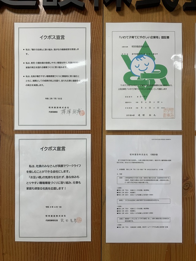 『昭栄建設株式会社は、全ての社員が仕事と家庭の両立ができ、いきいきと活躍できる職場づくりに引き続き全力で取り組んでまいります。』