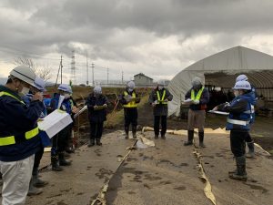 実施後は現場事務所にて反省会を行い、良好・指摘事項を発表しました。