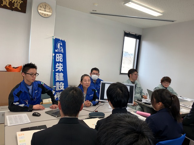 土木現場では、「測量を実際に体験したが、時間がかかった。一方、現場の方は素早くやっていて圧倒された。」、「3日間を通して、土木関係の仕事に就職したいという気持ちが強くなった。」などと、感想を述べていました。
